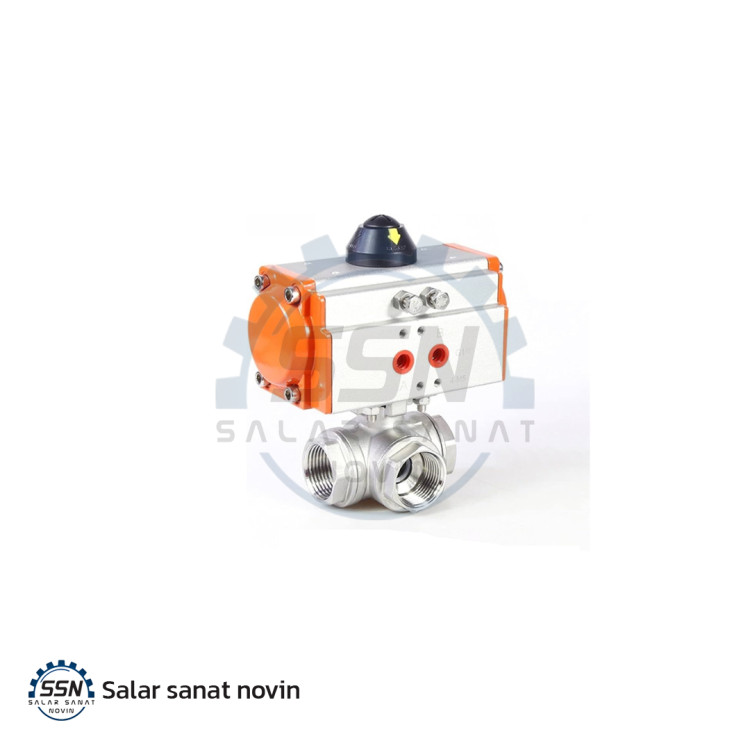 شیر توپی سه راهی دنده برقی پنوماتیک استیل