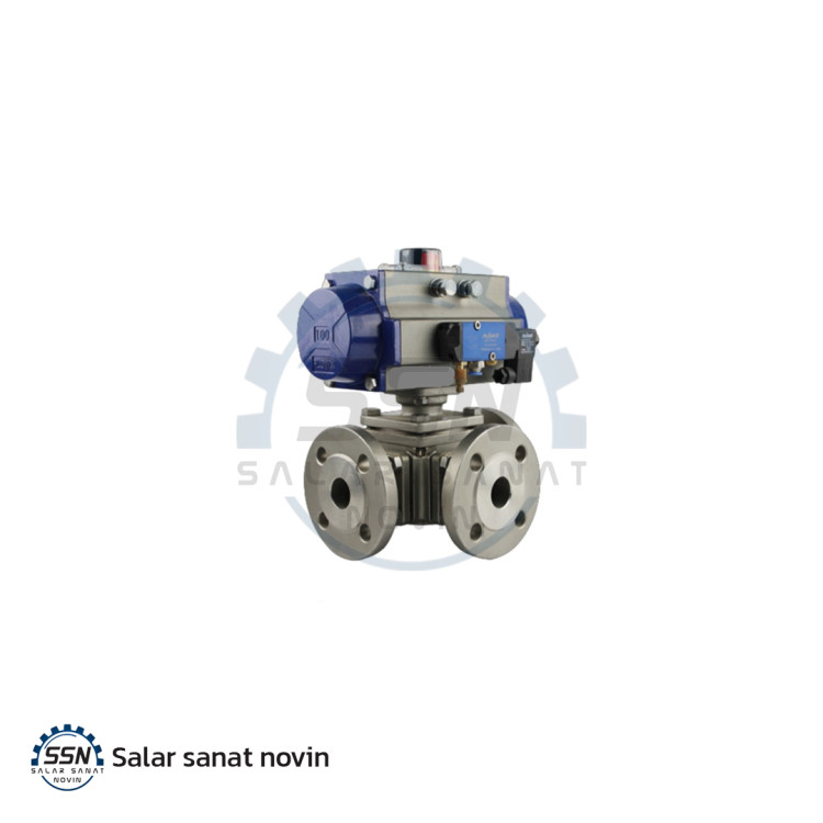 شیر توپی سه راهی فلنج دار برقی پنوماتیک فولاد