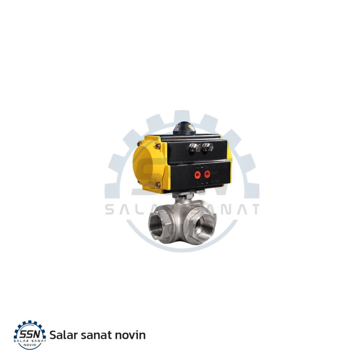شیر توپی سه راهی دنده برقی پنوماتیک استیل